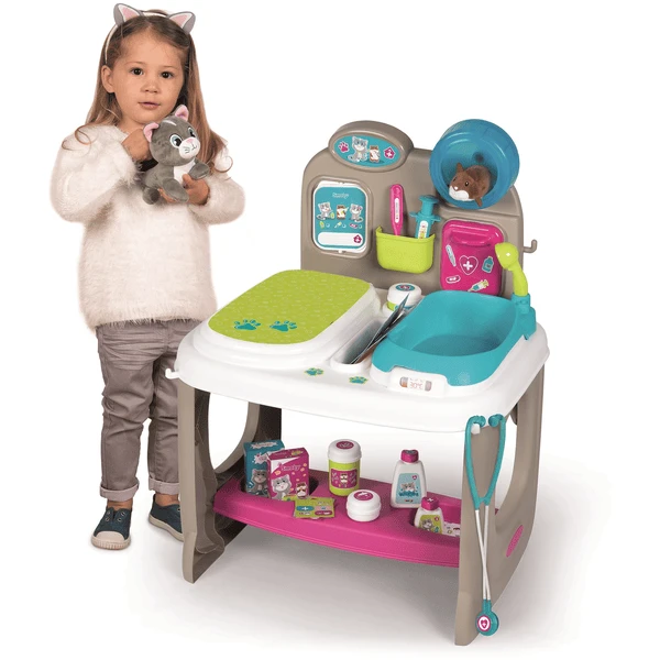 Hiervoor zijn verschillende speelterreinen beschikbaar: De patiëntjes kunnen plaatsnemen aan de onderzoekstafel om de oorzaken van hun pijn te achterhalen. Daartoe zijn er in de verschillende opslagruimten tal van onderzoeksaccessoires aanwezig, zodat ze snel kunnen worden behandeld. Het bad met handdouche in de badruimte kan zelfs met water worden gevuld. In het looprad kan de hamster laten zien of iets hem pijn doet tijdens het rennen.